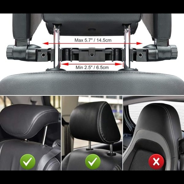 Bilo da ste visoki ili niski, DRIVEREST nudi potpunu prilagodljivost. Nasloni za glavu rotiraju se za 180° i prilagodljive pozicije rupa (7-16 cm) omogućuju vam pronalaženje najudobnijeg i personaliziranog položaja za odrasle i djecu. S prilagodljivim razmakom šipki, savršeno pristaje u bilo koji model automobila ili vozila.