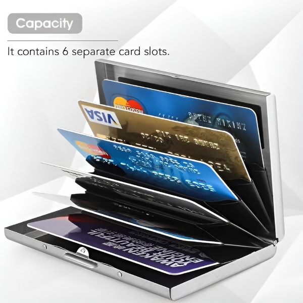 Izrađen od visokokvalitetnog nehrđajućeg čelika, ovaj novčanik je izdržljiviji i dugotrajniji od plastičnih ili aluminijskih opcija, nudeći vrhunsku zaštitu za vaše kartice.