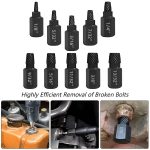 10-dijelni set za izvlačenje vijaka nudi širok raspon veličina, osiguravajući da imate pravi alat za svaki zadatak izvlačenja.
